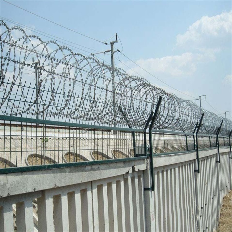 鐵路加密防護柵欄網片規(guī)格:高1.1m金屬浸塑網片,網片令拔絲直徑不小于3.5mm,鐵路混凝土立柱加高網,浸塑厚度不小于0.3mm;每個網格高不大于10cm,寬不大于5cm。