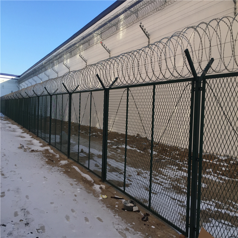 刺絲滾籠隔離網立柱: 80mmX80mmX s. 0m熱鍍鋅方鋼管,地上高度4500m,地下高度700mm (需加橫筋固定) ,立柱采用 Q235方管,立柱頂部戴方帽,厚度5cm。