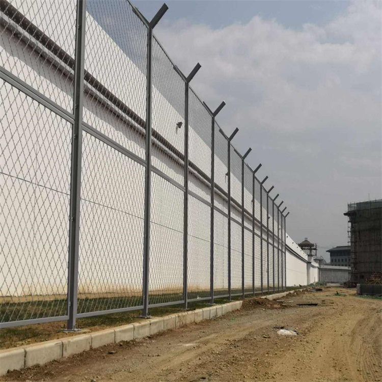監獄金屬圍墻網主要技術參數 1.監獄隔離網的篩網:50mm×50mm。 2.網眼直徑:φ6.0mm(浸后)。 3.監獄隔離網的Y形柱間距:3.0m,頂部Y形支架做防水處理。 4.的立柱管:60mm×60mm×3mm 5. 監獄隔離網的方管和框架等主要部件需要進行熱浸鍍鋅,塑料浸漬和密封等工藝處理。 6. 安裝要排列均勻,致密,牢固連接。 7. 監獄隔離網的抗腐蝕能力強,表面浸塑,外觀漂亮,安全等級高. 8.框架規格40mm×20mm×2mm 9.監獄金屬圍墻網的配件有:防盜螺栓(螺母),Y形立柱,帶刺鐵絲網和隔離網,不銹鋼刺繩和內部六角形。 10.監獄金屬圍墻網的安裝高度不少于3.4米,安裝監獄隔離網后的總高度不少于4.0米。 監獄金屬圍墻網是一種新型防護網,具有防翻越等效果,監獄隔離網的材質堅硬,高強度,高張力,造型設計獨特,但是不宜觸摸,可以達到極好的防護隔離效果,監獄隔離網具有施工簡便,經濟實用等優點。 監獄隔離網的主要用途:用于監獄、哨所、邊防、圍禁區域、軍事防御防護等高危險地區的防護。