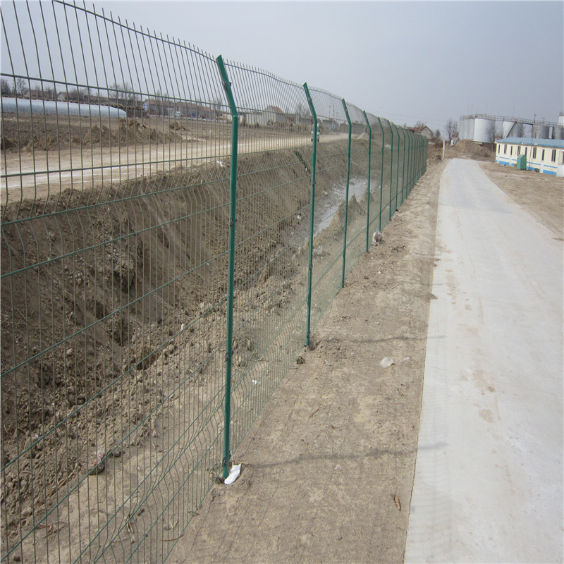 農(nóng)田保護(hù)圍欄結(jié)構(gòu):用高強(qiáng)度冷拔絲與低碳鋼絲焊接后經(jīng)過液壓成型,用鏈接附件與鋼管支柱固定。