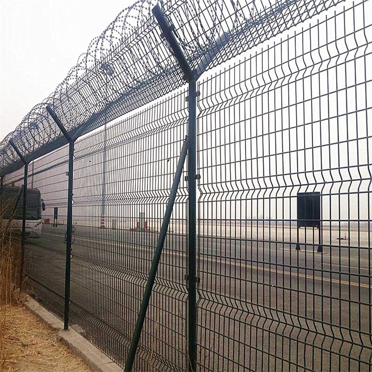 機場圍界網在安裝的時候都想安裝得平整筆直,但是這樣很容易給柱子造成比較大的壓力。所以在拐角地方需要從兩方面進行斜撐,以防止兩個面上的拉力導致角柱彎曲變形。