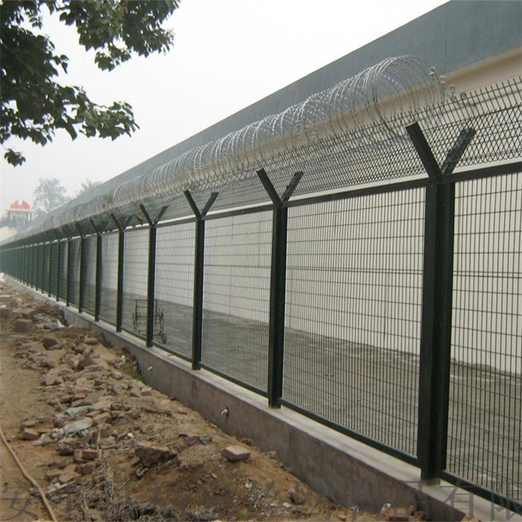 監獄鋼網墻加高網材質采用Q 235鋼材制作而成,該材質具有韌性大,硬度高的特點,是制作防御隔離網的上等選材。鋼網墻加高網的編織特點具有結構新穎、堅固緊密、網面平整、網孔均勻、防攀爬、防拆卸、防剪、抗腐蝕性強等特點。顏色可根據各監區的制作要求定制,常規顏色有草綠色、墨綠色、白色、灰色,鋼網墻一般頂端都設有V型支架與立柱焊接,材料通常選擇和立柱同等材料或者稍小規格材料搭配使用。V型型支架的加裝是為了將蛇腹形刀刺網固定在隔離網頂部,從而有效的增加監區隔離網的防攀爬性和安全性。