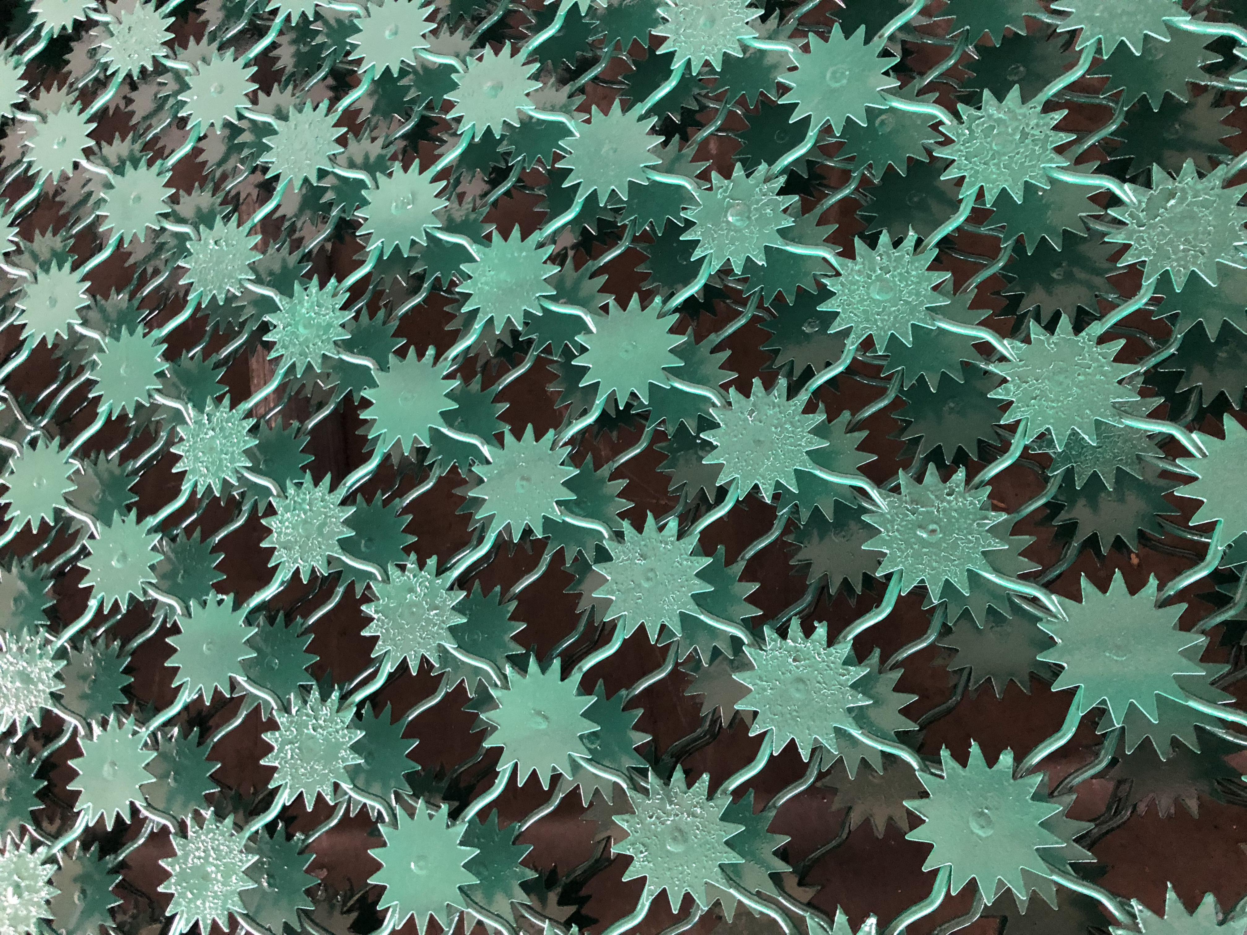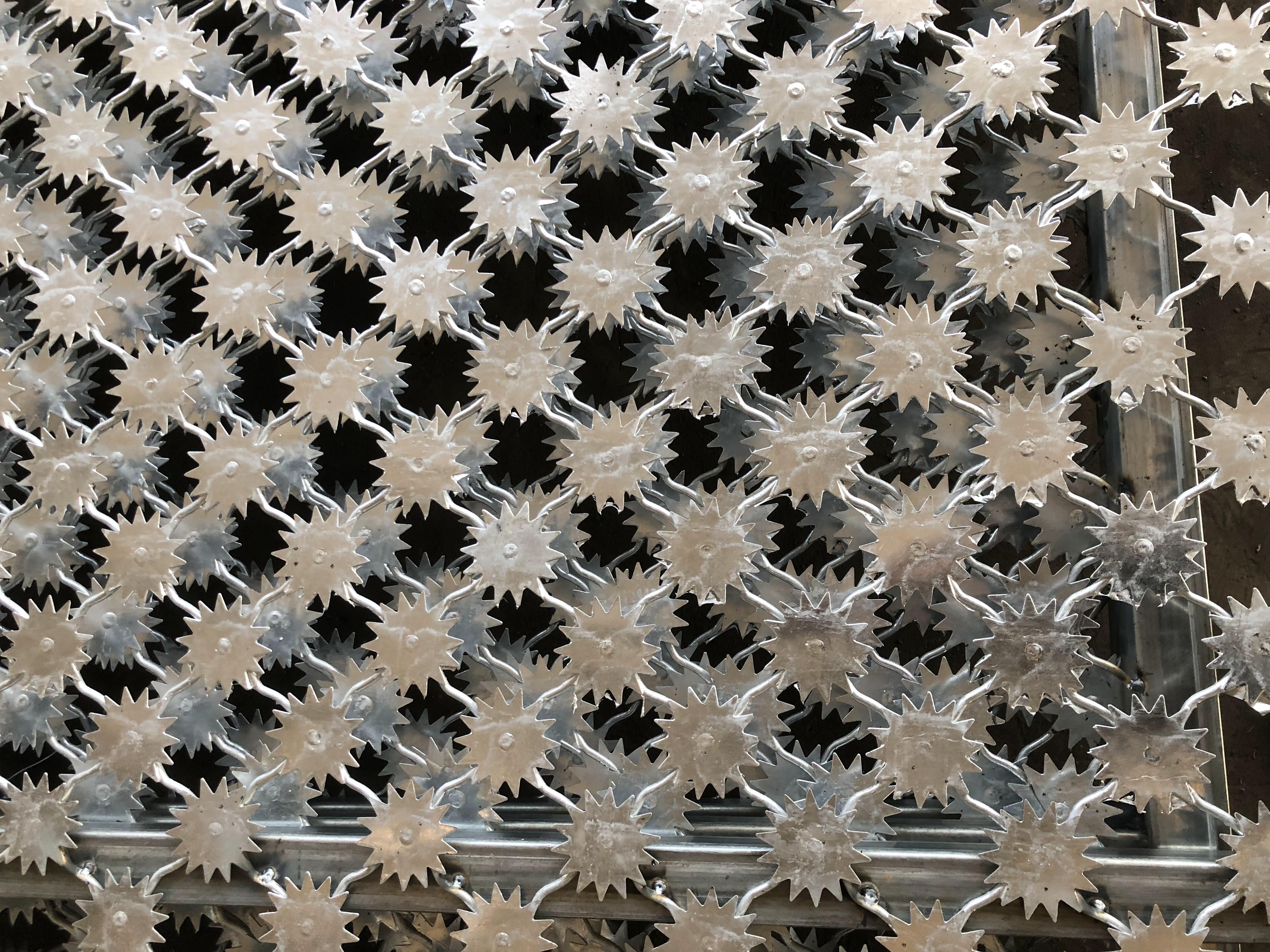 梅花刺網又稱監獄護欄網或監獄隔離柵,主要是采用高強度的刀片刺網與普通防護網的結合,由V型支架立拄,加強型焊接片網,安全防盜連接件和刀片刺網組成.刀片刺網是一種新型防護網,由銳利尖角鍍鋅鋼板或不銹鋼薄板做刀片,鋼絲做芯線組合而成的防護器材梅花刺網又稱高安全防護網、監獄防護網,是用氬弧焊將梅花形刺片焊接在美格網的節點上,形成刺形保護,有效的防止了手握腳攀,為此該鋼網墻在監獄或看守所使用。