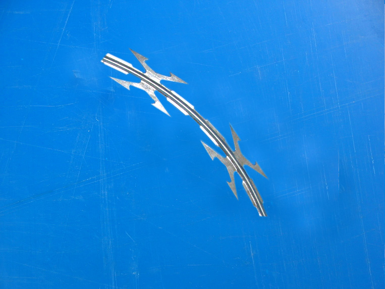 鋼絲為芯絲,將沖壓好的刀片包裹在芯絲上,一次制成。具有的防護(hù)能力和的恐嚇能力,安裝方便,壽命長(zhǎng)。它分為直線型、交叉型、直線盤繞型、交叉盤繞型和十字交叉型。