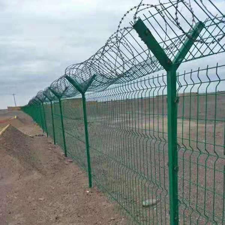 柵欄網面多選用菱形或矩形網格設計,網格尺寸經過專門計算,在實現視野通透的同時,能有效阻擋人員穿越。部分設計會在網面中段設置橫向加強構件,形成連續阻隔帶。支撐系統采用深埋地下的穩固立柱,并通過混凝土基礎固定,確保結構整體穩定。