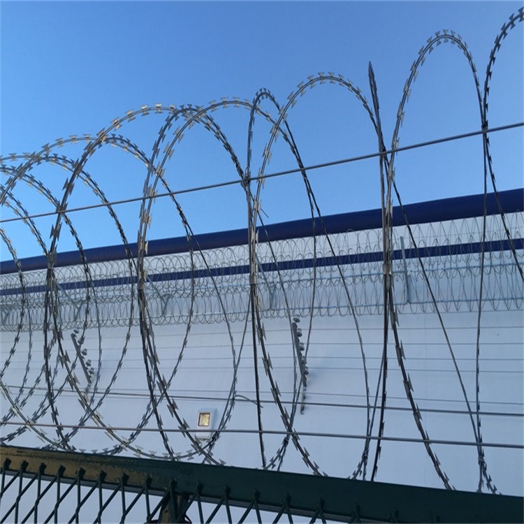 除了物理阻隔,蛇腹型刀刺網(wǎng)的另一個(gè)重要作用是提供心理威懾。其鋒利的刀片和規(guī)整中透著凌厲感的螺旋造型,在視覺上就能給人留下深刻的印象。當(dāng)它安裝在監(jiān)獄、軍事基地、邊境線或機(jī)場(chǎng)等高安全場(chǎng)所的圍墻頂端時(shí),本身就在宣示著區(qū)域的警戒性。這種威懾力讓潛在闖入者在行動(dòng)之前就會(huì)產(chǎn)生心理壓力,從而有效降低了安全風(fēng)險(xiǎn),實(shí)現(xiàn)了物理隔離與心理警示的雙重防護(hù)。