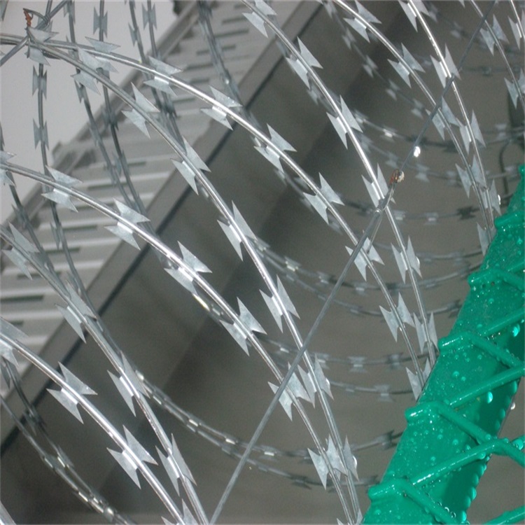 蛇腹型刀刺網(wǎng),因其螺旋狀外形也被稱為蛇腹網(wǎng)或螺旋式刀片刺繩,是一種高效的物理隔離設(shè)施。它的作用首先體現(xiàn)在強(qiáng)大的阻隔功能上。這種產(chǎn)品的制造工藝十分獨(dú)特:通過沖壓技術(shù)將鍍鋅鋼板或不銹鋼薄板加工出鋒利的刀片狀,再將這些刀片以一定的間距包裹在高張力的鍍鋅鋼絲芯線上,最終擰編成蛇腹?fàn)畹穆菪Y(jié)構(gòu)。這種結(jié)構(gòu)使得防護(hù)網(wǎng)在安裝后呈現(xiàn)出密集的刀刺陣列,無論是攀爬還是觸碰都極為困難,從而在物理層面形成一道難以逾越的屏障。