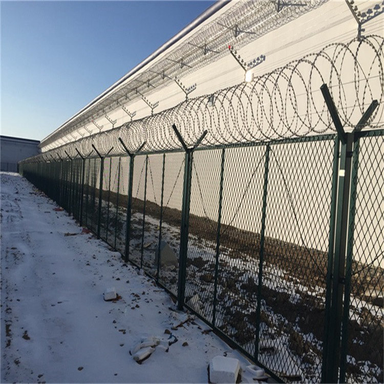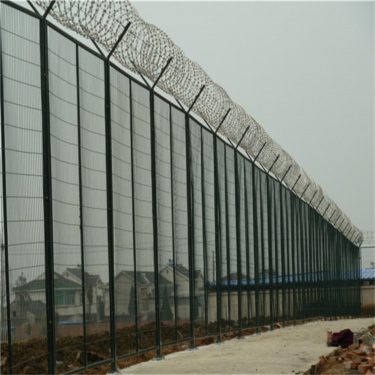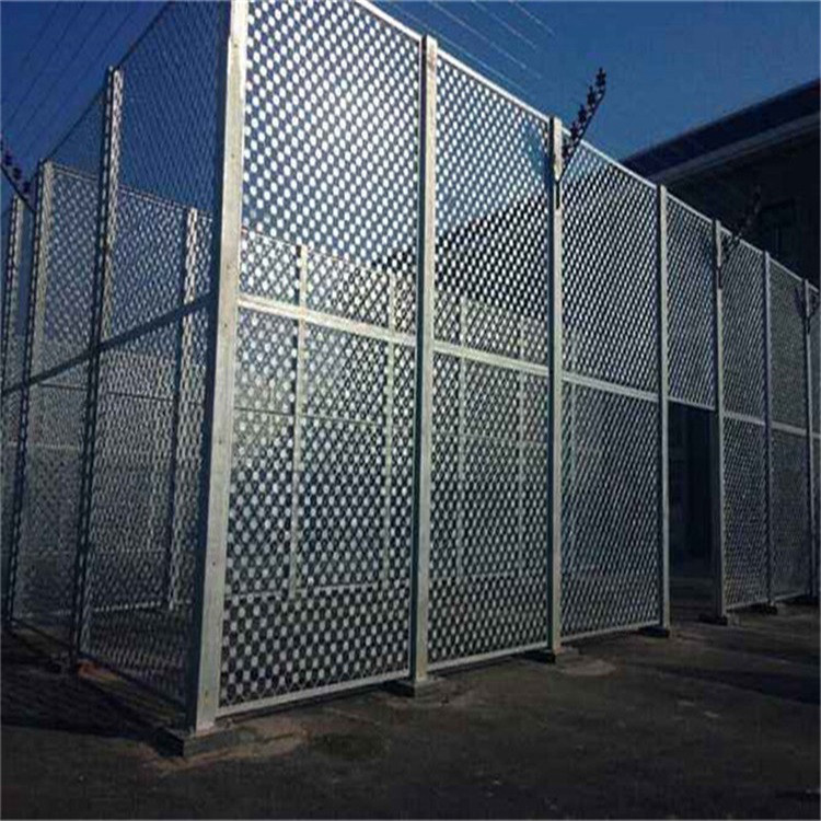 監(jiān)獄鋼網墻的防腐處理是確保其長期服役性能的關鍵環(huán)節(jié),工藝體系通常涵蓋表面預處理與涂層覆蓋兩道主要工序。表面預處理階段,鋼構件需通過拋丸或噴砂工藝去除氧化皮、銹蝕及雜質,使基體表面達到均勻的粗糙度,以增強涂層附著力。預處理后的構件隨即進入熱浸鍍鋅工序,浸入熔融鋅液中形成鋅鐵合金層與外層純鋅層,該金屬鍍層具備物理屏蔽與電化學保護雙重作用,能有效延緩基材銹蝕進程。