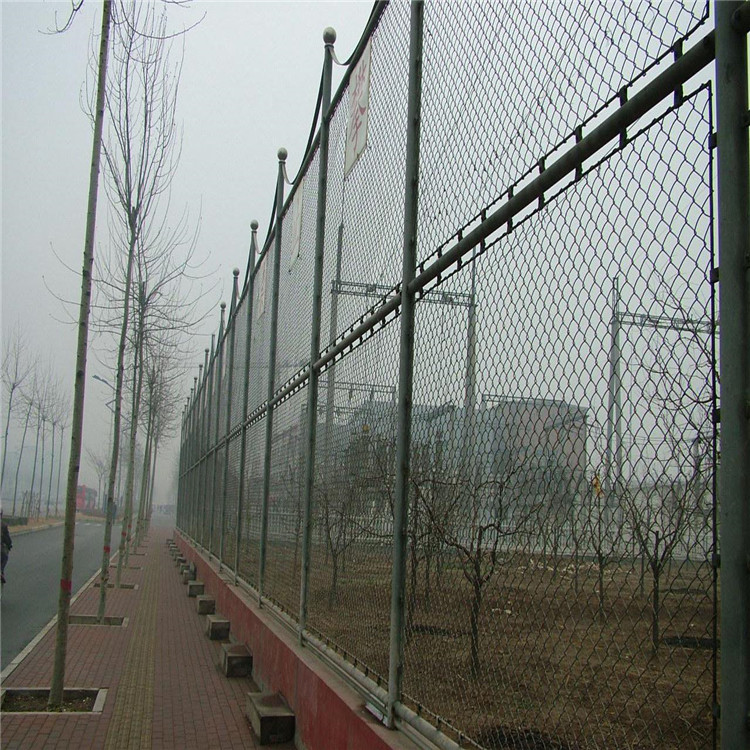 學校操場防護網內絲選用優質鍍鋅鋼絲,表面采用pe和pvc包塑絲,立柱和框采用噴塑浸塑處理。球場 圍網一般采用外徑為4.0的包塑絲。網孔為50mm,立柱和橫柱分別是60/2.5mm48/2mm圓管。圍網的顏色多采用墨綠和草綠色。球場 圍網的規格顏色也可根據客戶要求定做,圍網安裝簡單 免維護而且美觀耐用,有較好的防護 裝飾效果。球場 圍網安裝方式:預埋,先挖好基坑,再將立柱放入基坑中澆筑混凝土,等混凝土凝固好再安裝圍網。2底盤 地面必須是硬化面,在地面打膨脹螺栓將立柱予以固定。