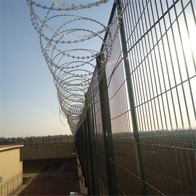 監(jiān)獄鋼網(wǎng)墻又稱作“Y型安全防御護網(wǎng)”,是由V型支架立柱,加強型焊接片網(wǎng),安全防盜連接件和熱鍍鋅刀片刺籠組成強度和安全防御性級別很高。