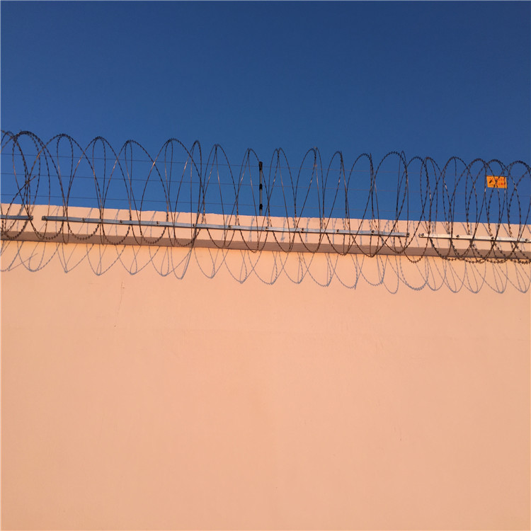圍墻鍍鋅刀片刺網在設計安裝的過程中,我們強烈建議用V型支架固定,刀片刺繩在使用過程中,多數時候都是搭配安裝在鐵絲網圍欄的頂端,起增強防護作用的,如果作為墻的防護,安裝一定要牢固,防止一些外在的因素發生墜落。