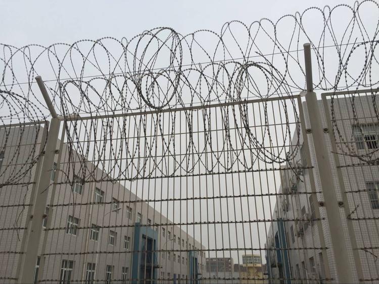 看守所金屬隔離網一般在頂部架設刀片刺絲,能夠更好的達到防止攀爬、阻嚇的作用。蛇腹式刀片刺絲又叫刀片刺網,刀刺隔離網,它是一種阻絕措施,由不銹鋼板或者鍍鋅鋼板經過沖壓刀型和芯線制成,芯線一般是由具有很大張力的鋼絲做成的,原材料的特性造就了刀刺網具有防破壞、耐腐蝕等特點。刀刺網有銳利的刀尖,所以從外觀上來看就給人一種恐怖的感覺。