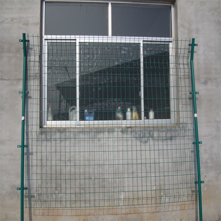 為防止立柱歪斜可以用固定物支撐住立柱,此時可以再次測量柱子到柱子的位置,如果不對可以微調一下柱子。如果是為了使雙邊絲護欄更牢固,可以在坑中填制混凝土。待混凝土干透了再進行網片的安裝。